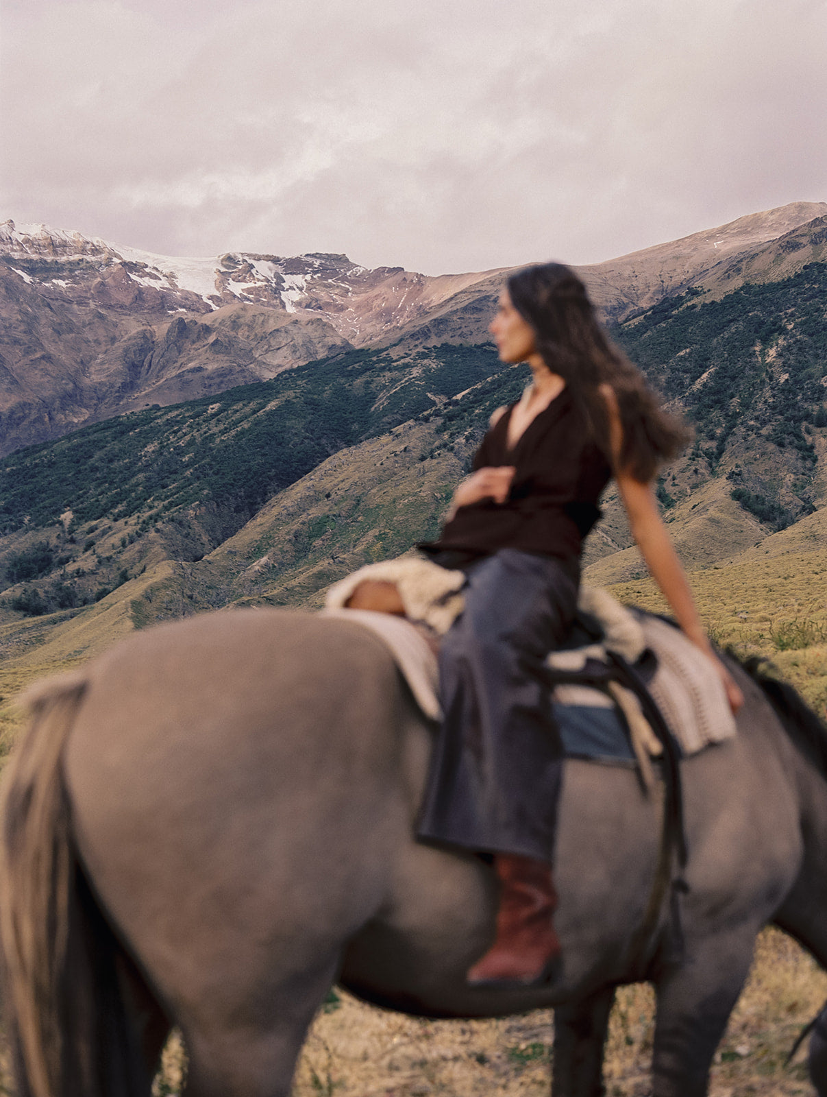 Las montañas, el viento, los caballos no la enmarcan. La reconocen.